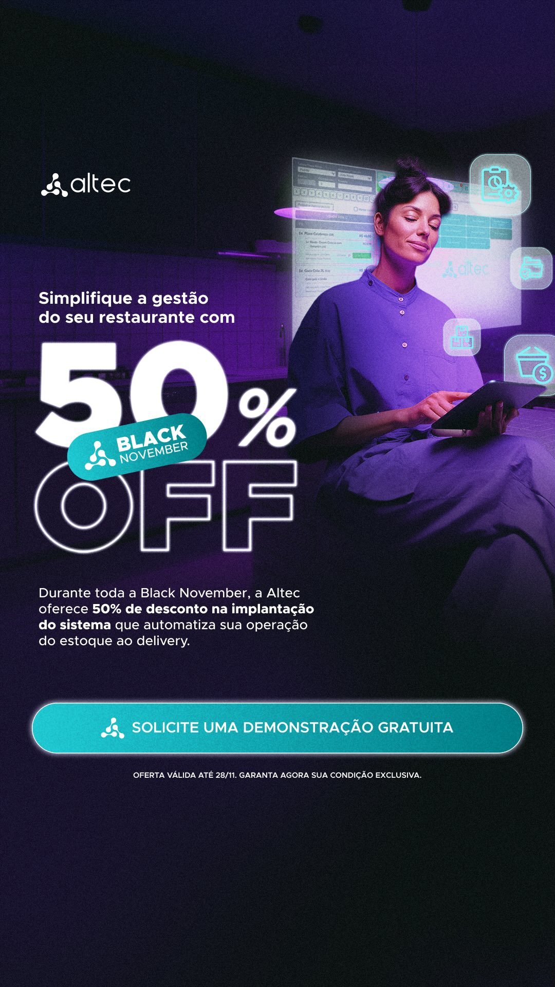 Com a Altec, você automatiza tarefas repetitivas e foca no que ama: atender seus clientes e ver seu restaurante prosperar.
